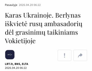 this is the Press Review regarding the article: https://www.lrt.lt/naujienos/pasaulyje/6/2903152/karas-ukrainoje-berlynas-iskviete-rusu-ambasadoriu-del-grasinimu-taikiniams-vokietijoje